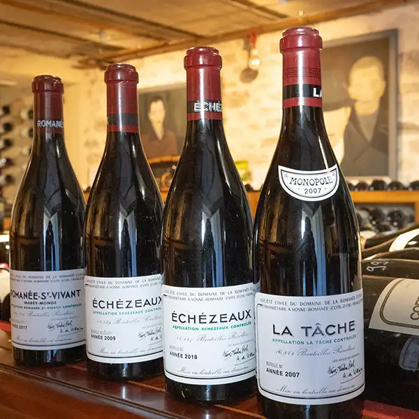 Just a few examples of legendary wines: La Grande Rue 1959 vintage from Domaine Lamarche, Romanée-Saint-Vivant from Domaine de la Romanée-Conti, Bâtard-Montrachet from Jean-Claude Ramonet, Musigny Grand Cru from Domaine Jacques Prieur, Corton-Charlemagne from Domaine Coche-Dury, Montrachet Grand Cru from A. Bichot, Chevalier-Montrachet from Domaine Leflaive…