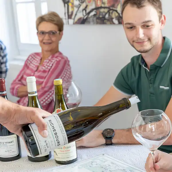 This offer includes an immersive workshop, eight bottles of Burgundy Grands Crus — including one from the Domaine de la Romanée-Conti — a gourmet tapas selection to complement each Grand Vin, and an overnight stay at our guesthouse, L’Escale de Jules & Lily in Bligny-lès-Beaune.